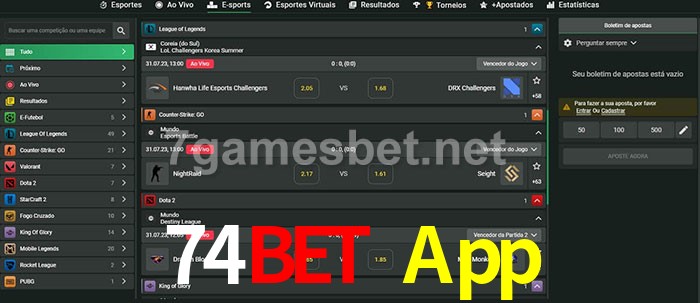 A aposta 74Bet App oferece aos jogadores a experiência mais conveniente de apostas em eSports!